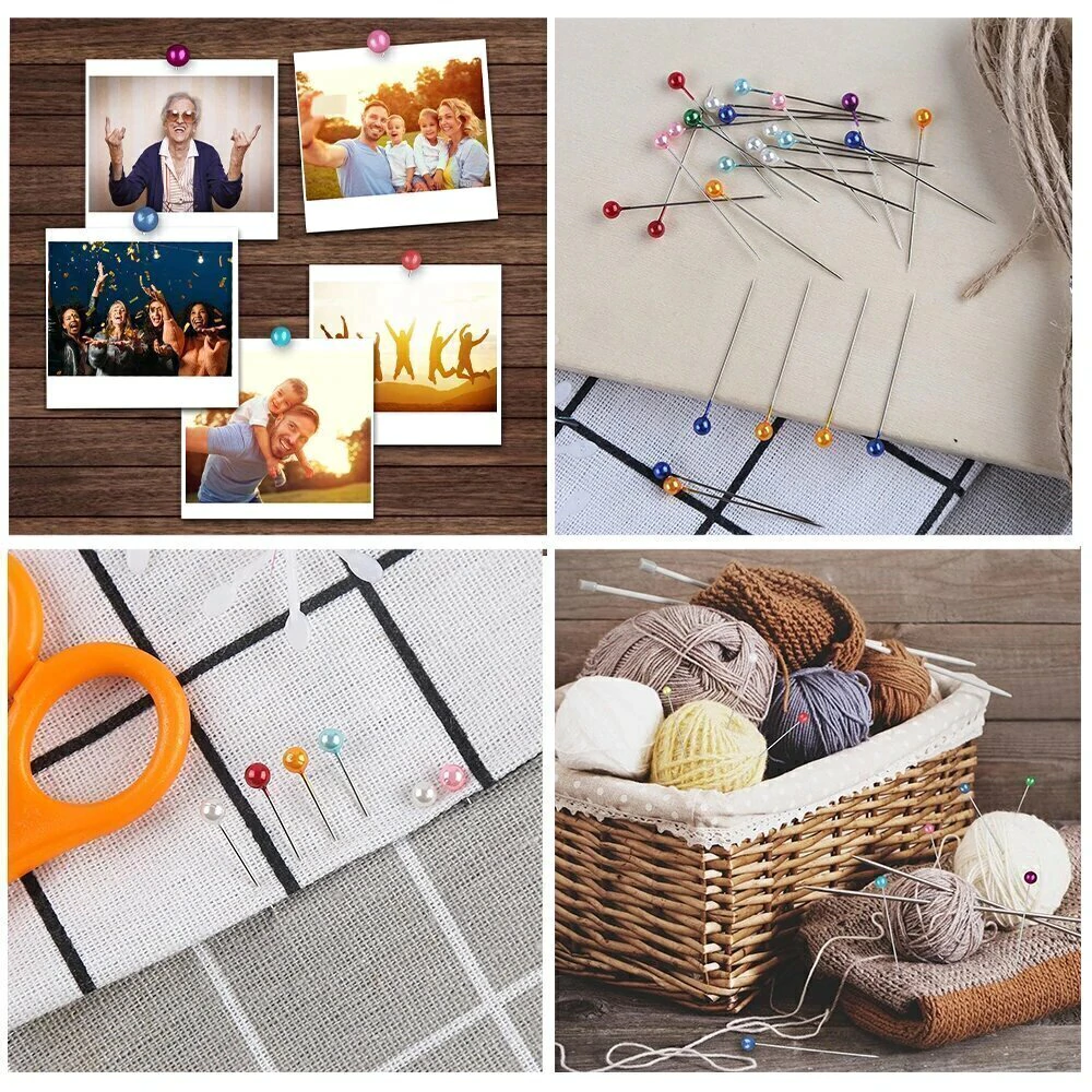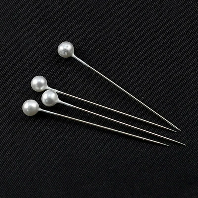 Medida: Largo: 3.8 cm. Ancho Cabeza: 4 mm. Material: Metal. Uso: Confección, Costura, Manualidades. Incluye: 100 unidades con cabezales perlados de color natural.