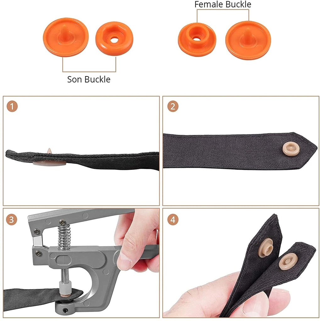 Medida: Alto: 10 cm. Largo: 15.5 cm. Ancho: 2 cm. Material: Metal Uso: Manualidades. Aplica broches Snaps solo plásticos. Incluye: Matrices para aplicar medidas T3, T5, T8, (10mm/12mm/14mm). Destornillador.