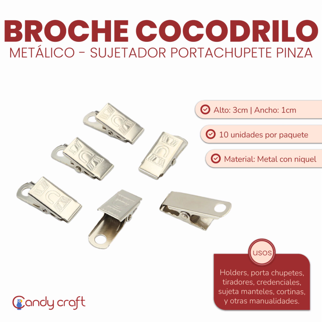 Broche Cocodrilo Metalico Sujetador Portachupete Pinza X10u