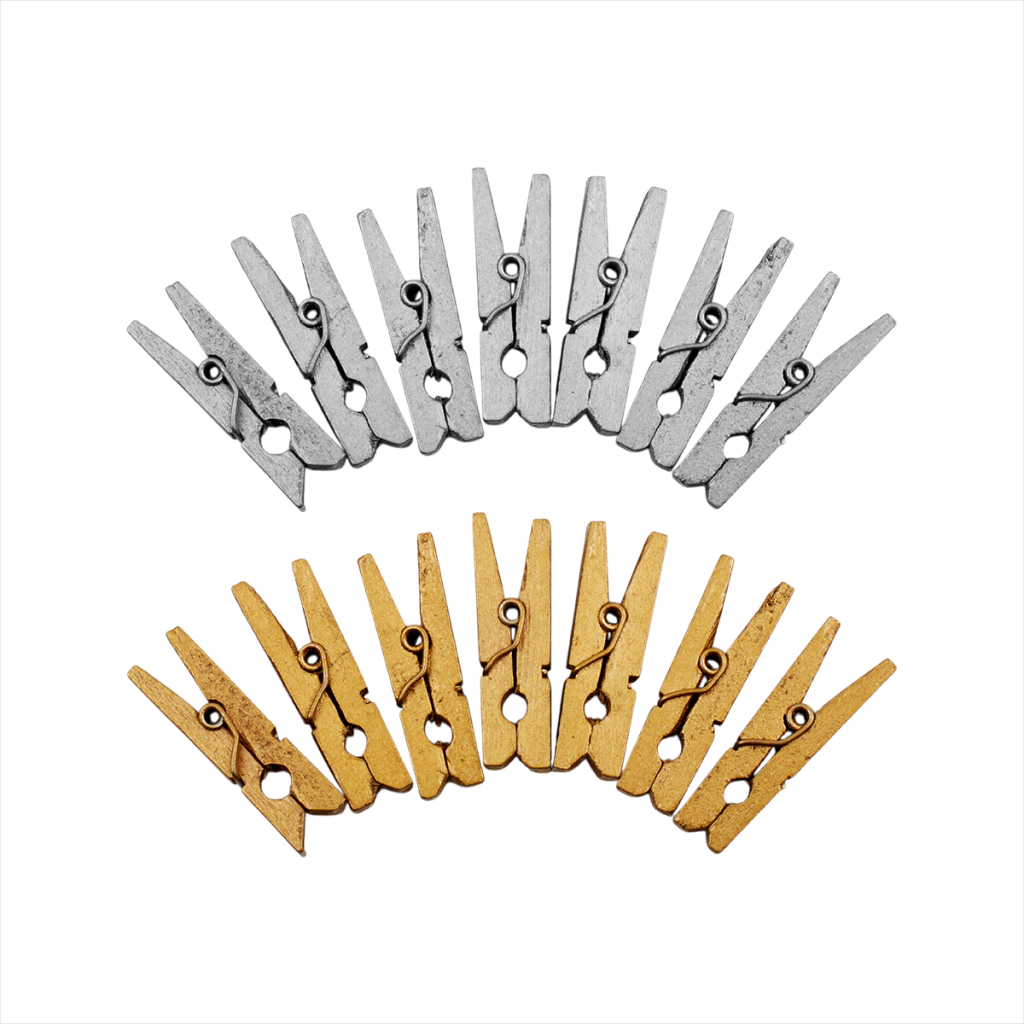 Medida Largo: 3cm. Ancho: 0,4 cm. Cantidad: 1 paquete con 50 unidades Material: Madera. Uso: Decoración, Souvenirs, Regalería. Ideal para colgar fotos.