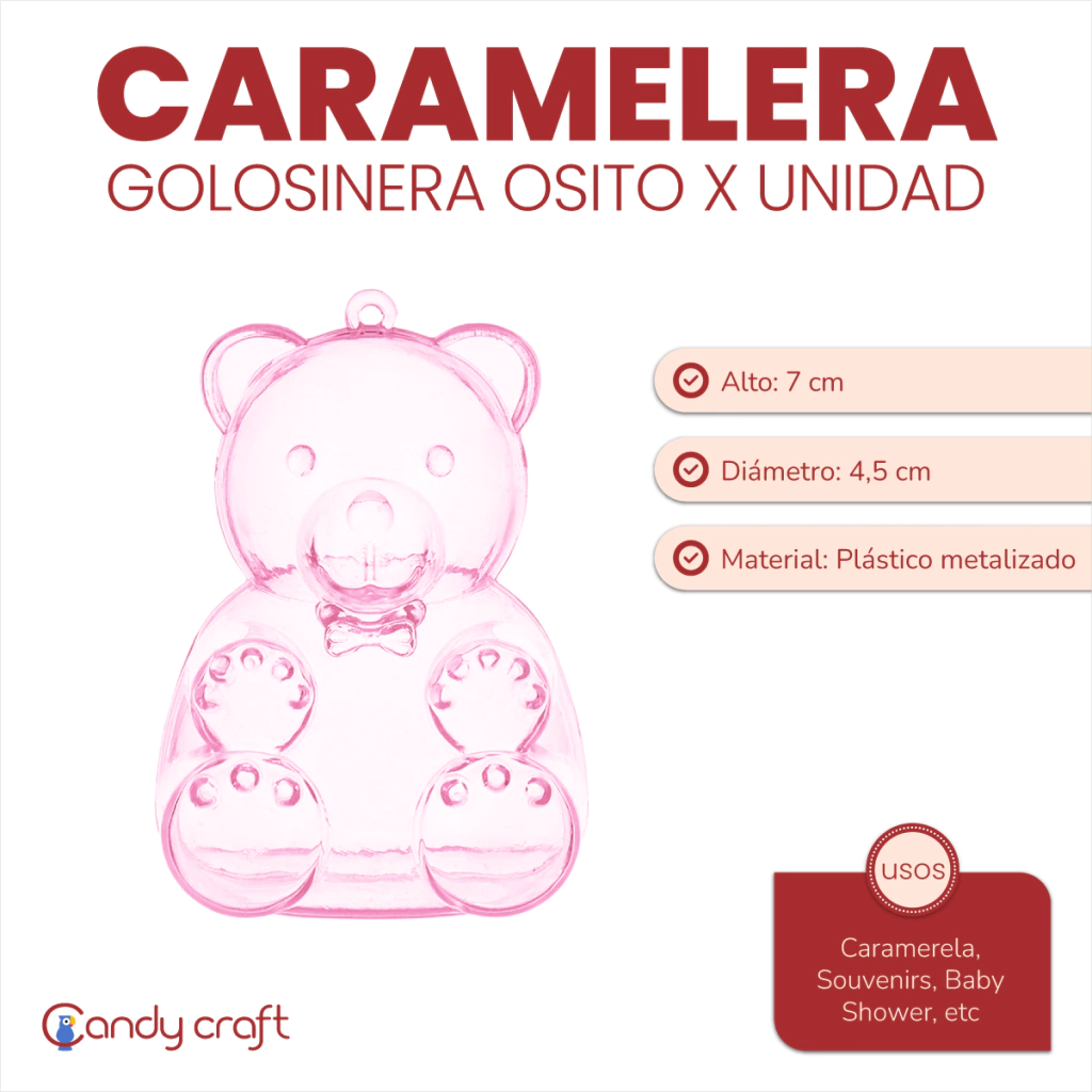 Medidas: Alto: 7cm. Diámetro: 4,5cm.  Material:  Acrílico. Uso: Caramelera, Souvenir, Baby Shower, etc.