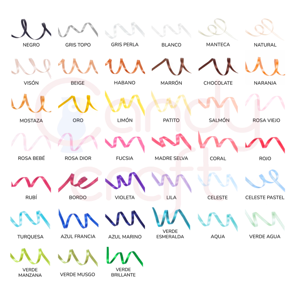 Medida Largo: 50 metros Ancho: 3 mm Marca: Cordón de Oro Material: Raso Uso: Souvenirs, Librería, Manualidades, Moños, Confección