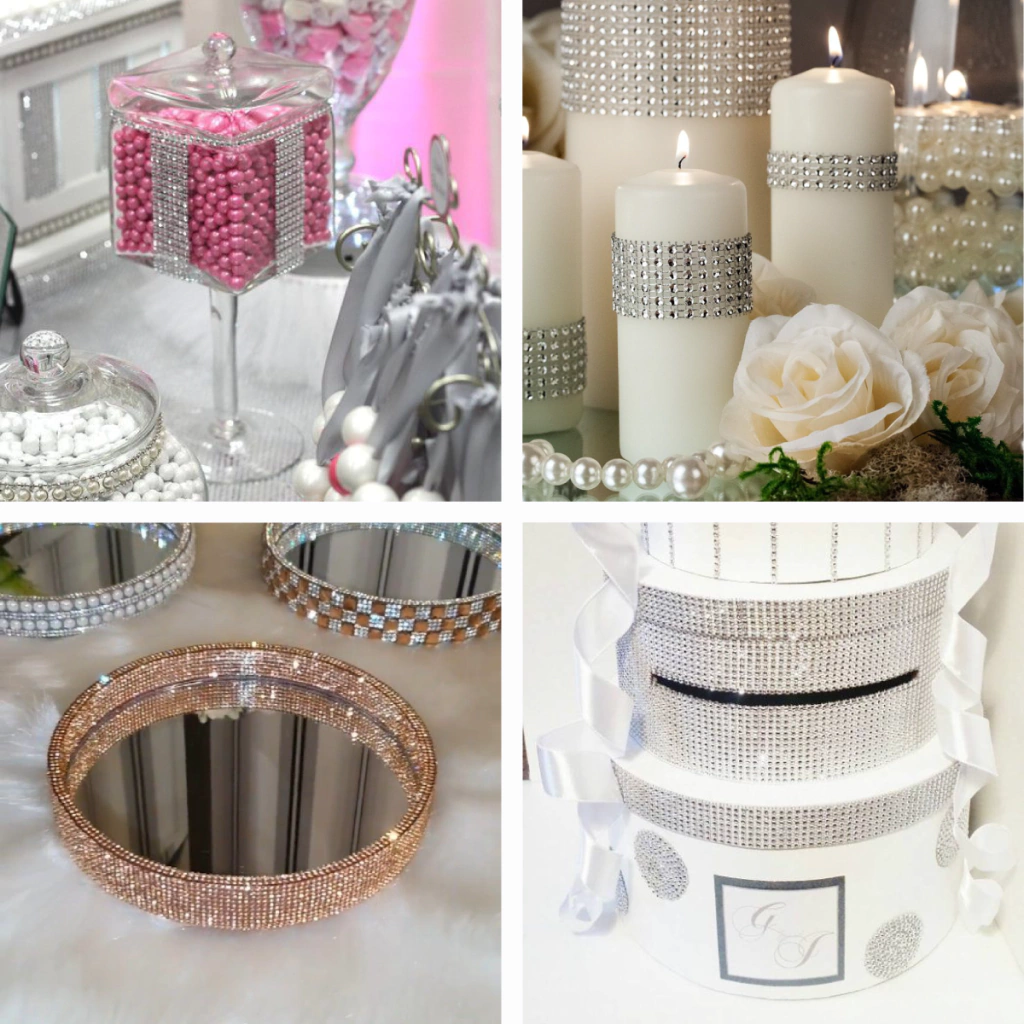 Cinta Strass 2cm x 9-14 metros  Medida  Largo: 9 metros  Ancho: 2 cm (4 Líneas de Strass)  Uso: Souvenirs, Manualidades, Confección