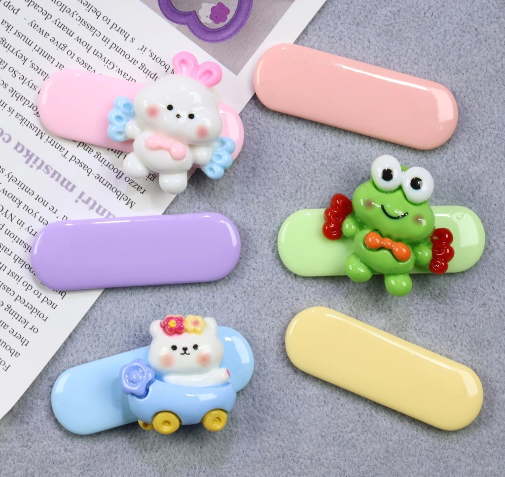 Pack de apliques del mismo modelo, en distintos colores pastel, ideales para aplicar en hebillas. Diámetro: 30mm. Alto: 3mm. Cantidad: 10 unidades.