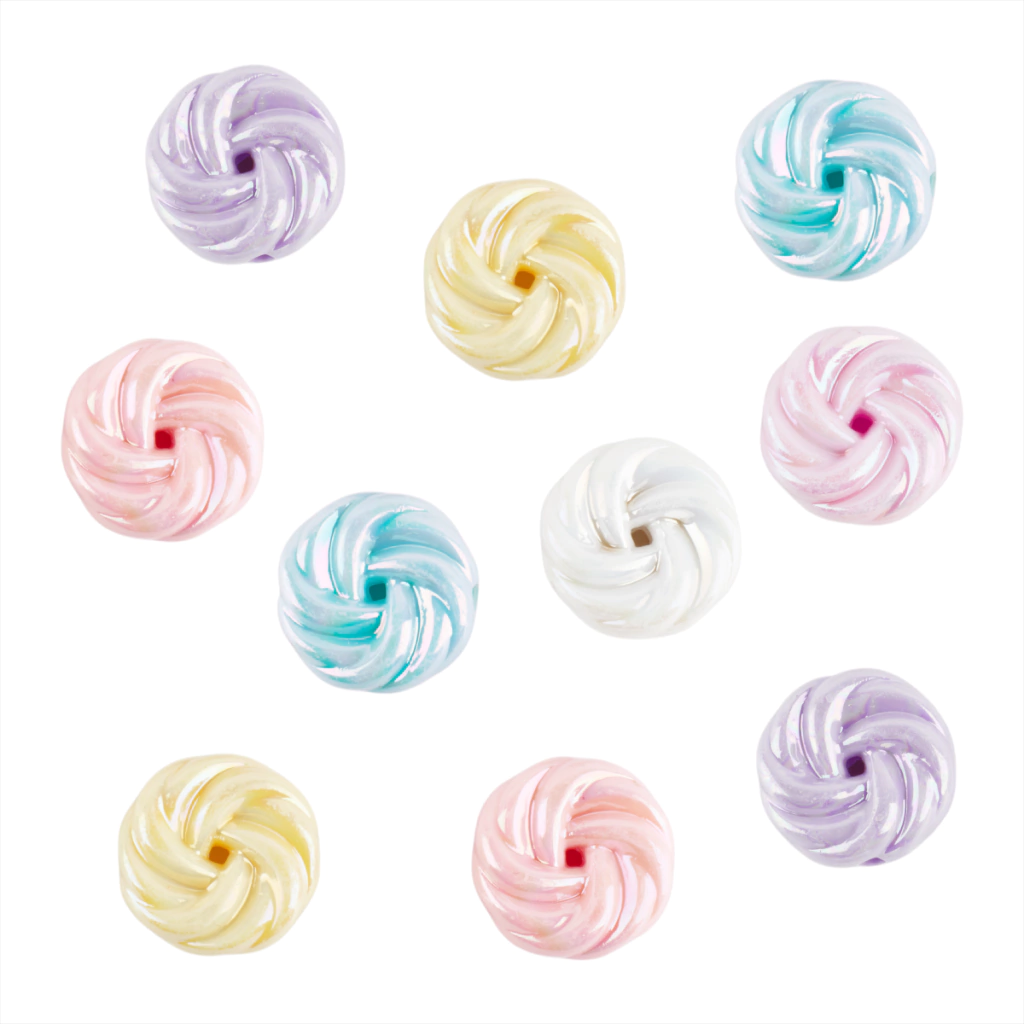Diámetro: 18 mm. Agujero: 2mm. Cantidad: un paquetito de 10 unidades en colores surtidos. Uso: Collares, pulseras, phone strap, llaveros, etc.