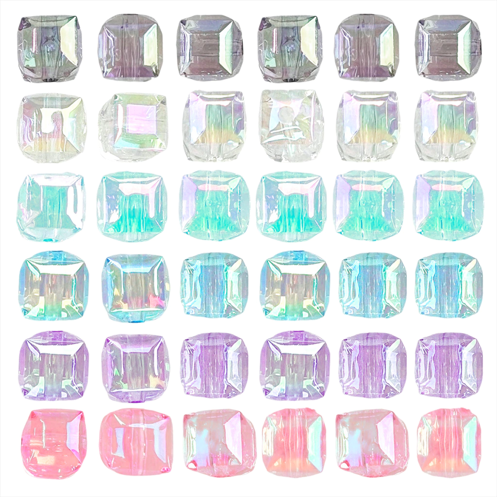 Medida: 8x8mm. Diámetro agujero: 2mm. Cantidad: 1 bolson de 500gr con aprox. 1200 unidades. Material: Plastico. Uso: Decoración, Manualidades, Pulseras, Collares, Holder para el celular, Souvenirs, etc.