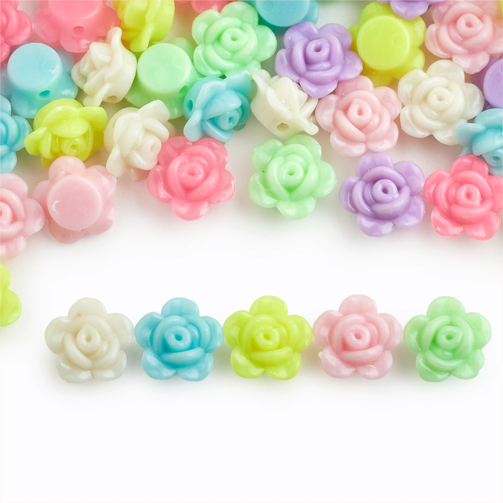 Medida: 12mm. Agujero: 1mm.  Cantidad: 1 bolsón de 500 gramos, con aprox. 1100 unidades. Material: Plastico.  Uso: Decoración, Manualidades, Pulseras, Collares, Holder para el celular, Souvenirs, etc.