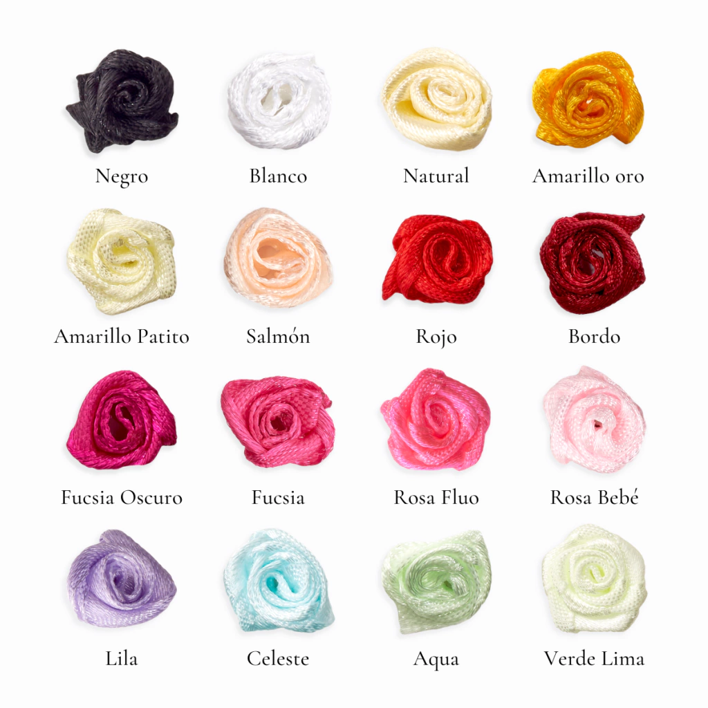 Medida  Diámetro: 7 mm aprox Material: Raso Cantidad: 1 paquete con 72 unidades del mismo color Uso: Cotillón, Vinchas, Egresos, Bodas, Decoración, Cumpleaños, Confección, Lencería