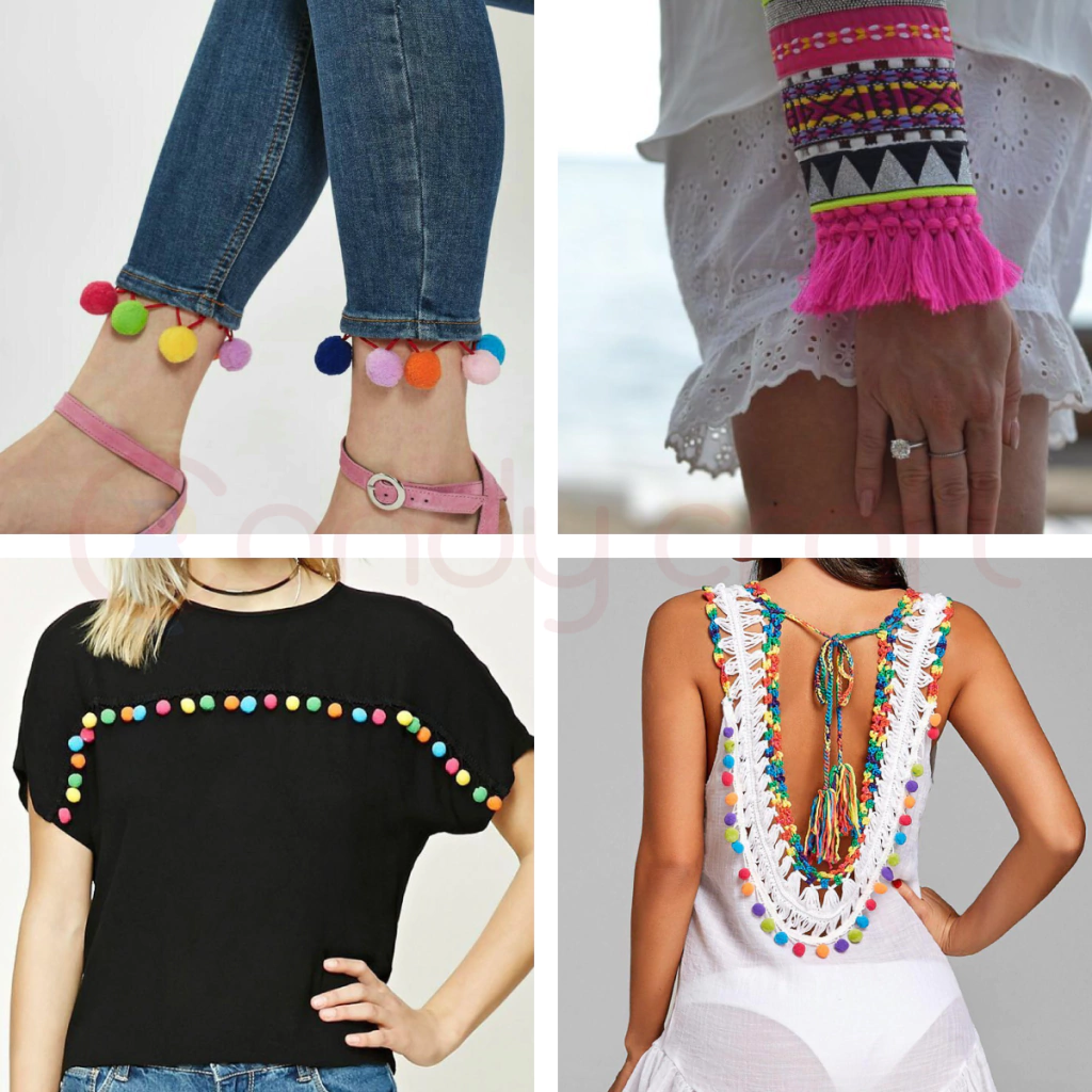Galon pompon fluo combinado de naranja, amarillo y verde.
