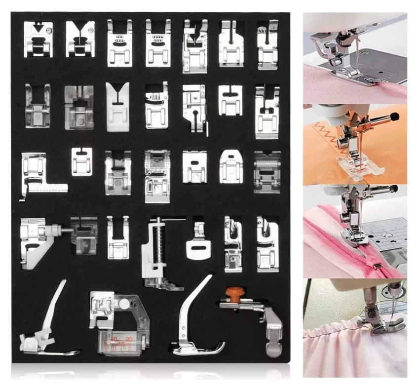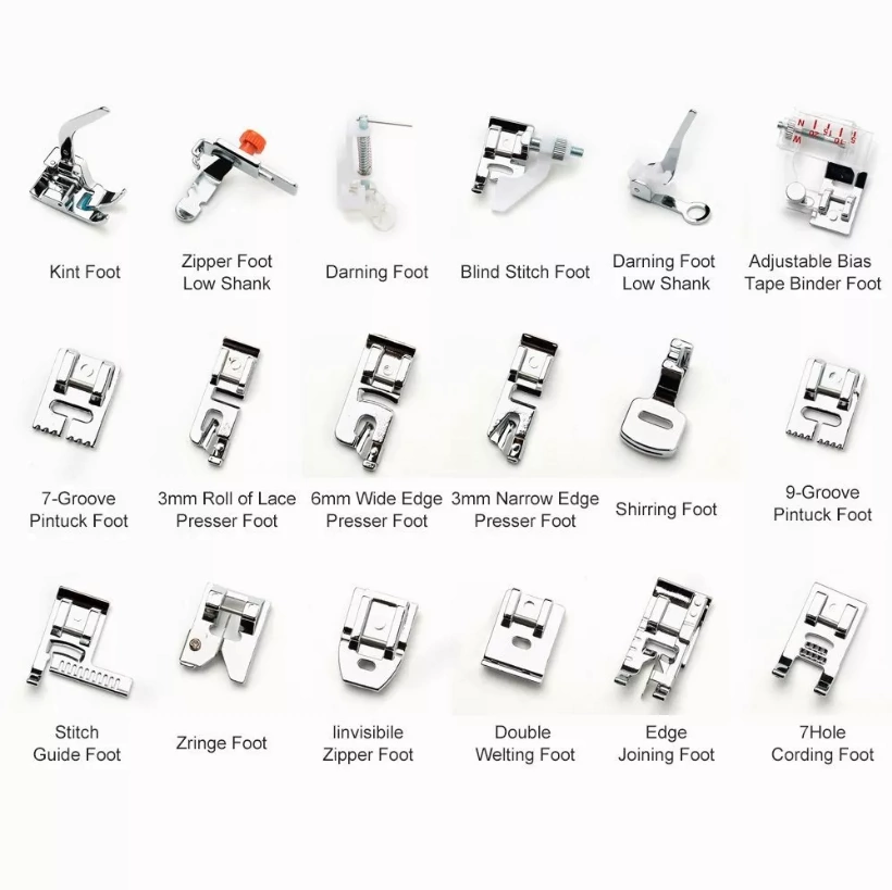 KIT PRENSATELA CON 32 UNIDADESIncluye: 1 Prensatela Trenzador. 1 Prensatela para Flecos. 1 Prensatela de hasta 5 Cordones finos. 1 Prensatela de hasta 7 Cordones finos. 1 Prensatela de Borde Estrecho o unión de bordes. Prensatela para Patchwork - 1/4 de pulgada. 1 Prensatela de Costura Recta. 1 Prensatela de Bordado abierto transparente. 1 Prensatela para Cordón, lentejuelas y lana. 1 Prensatela de Teflón Zigzag. 1 Prensatela de hasta 3 Cordones finos. 1 Prensatela para Patchwork con guía - 1/4 de pulgada. 1 Prensatela Acanalado. 1 Prensatela Falso Overlock o Surfilado. 1 Prensatela Guía de Puntada. 1 Prensatela de 5 Alforzas. 1 Prensatela de Satin. 1 Prensatela Jaguar. 1 Prensatela de Doble canal. 1 Prensatela Cremallera Invisible o Cierre invisible. 1 Prensatela de Rodillo (para guata). 1 Prensatela Dobladillo Invisible o puntada invisible. 1 Prensatela de Aplicaciones. 1 Prensatela de Bordado abierto de metal. 1 Prensatela de Bordado libre. 1 Prensatela Fruncidor. 1 Prensatela Ruloté. 1 Prensatela de Dobladillo. 1 Prensatela de Acolchado Libre. 1 Prensatela para colocar Bies regulable. 1 Prensatela de Tricot para Tejidos de punto. 1 Prensatela Ajustable para Cremalleras o cierres Comunes.