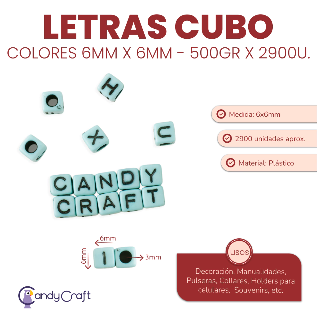 Medida: 6x6mm. Diámetro agujero: 3mm. Cantidad: 1 bolson de 500gr con aprox. 2900 unidades. Material: Plastico. Uso: Decoración, Manualidades, Pulseras, Collares, Holder para el celular, Souvenirs, etc.