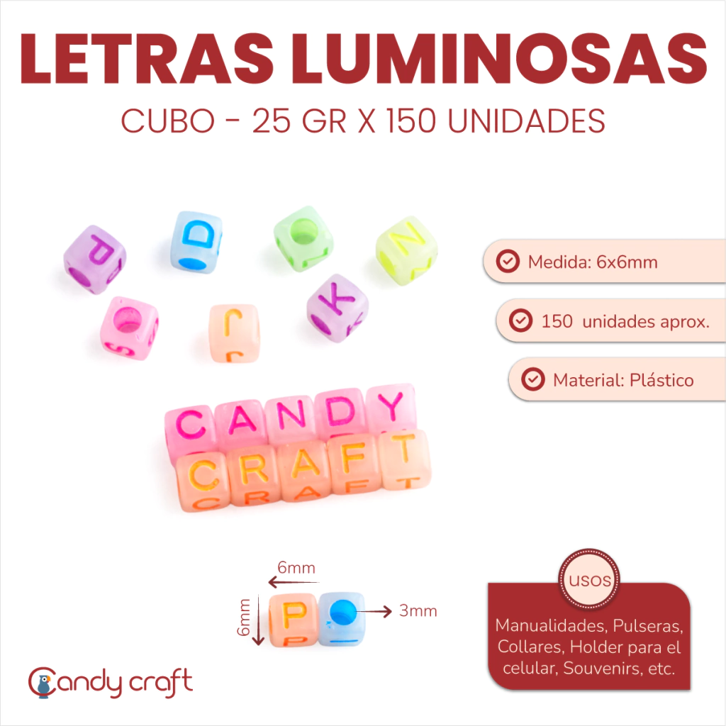 Medida: 6mm. Agujero: 3mm.  Cantidad: 1 paquetito de 25 gramos, con  aprox. 150 unidades. Material: Plastico.  Uso: Decoración, Manualidades, Pulseras, Collares, Holder para el celular, Souvenirs, etc.