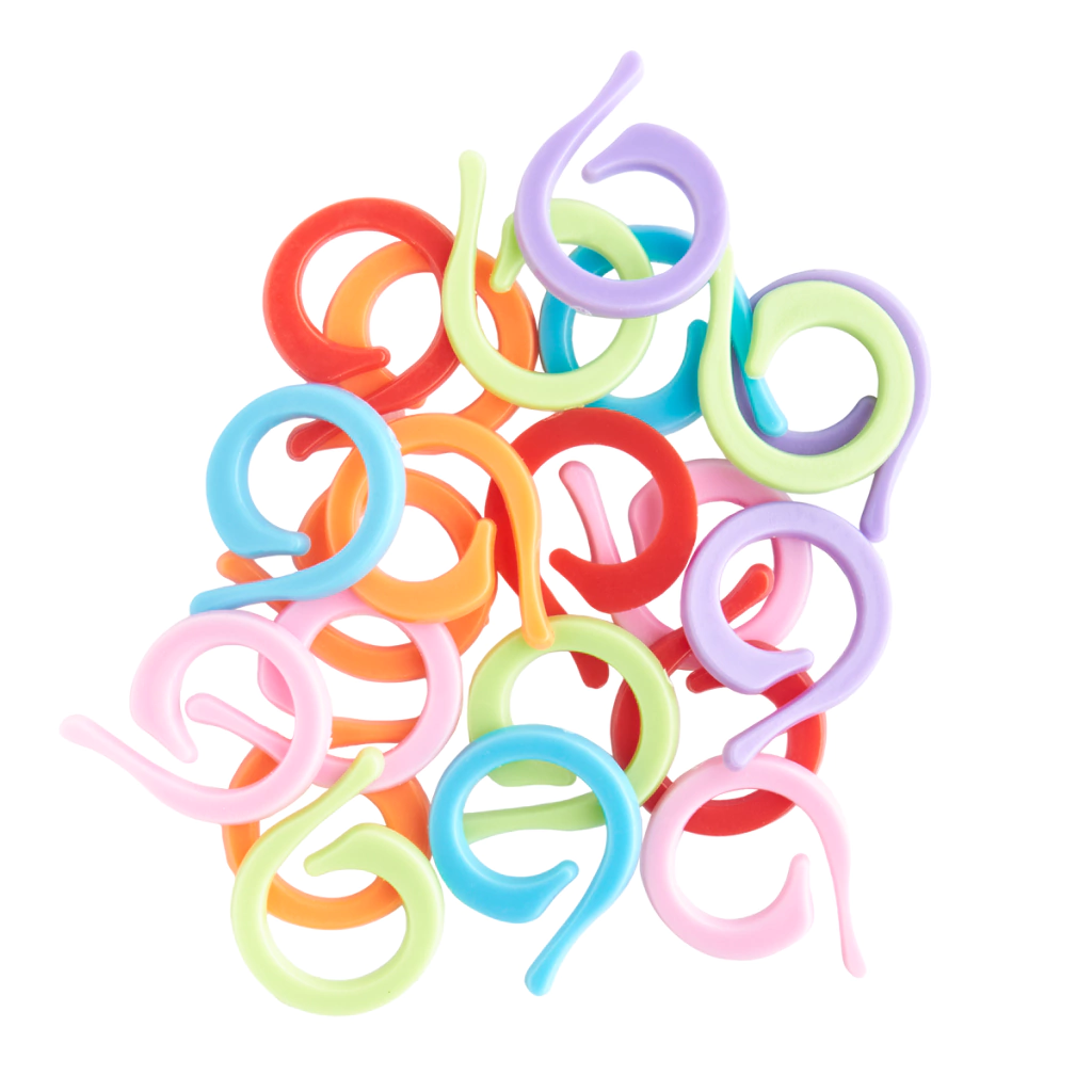 Marcadores de Punto para Tejido 17mm x 20 unidades Alto: 2cm. Ancho: 1,7cm. Diámetro del agujero: 1cm. Marcadores de punto bien resistentes en colores surtidos.