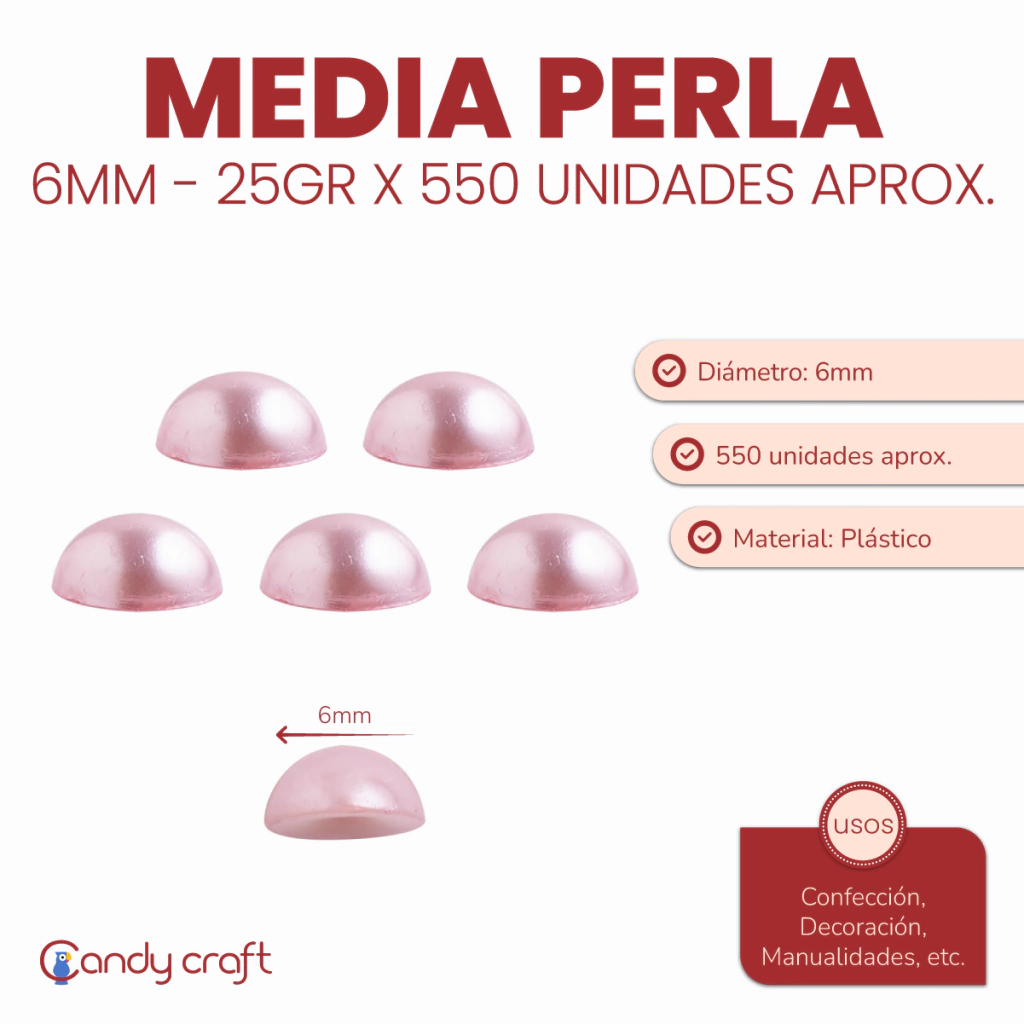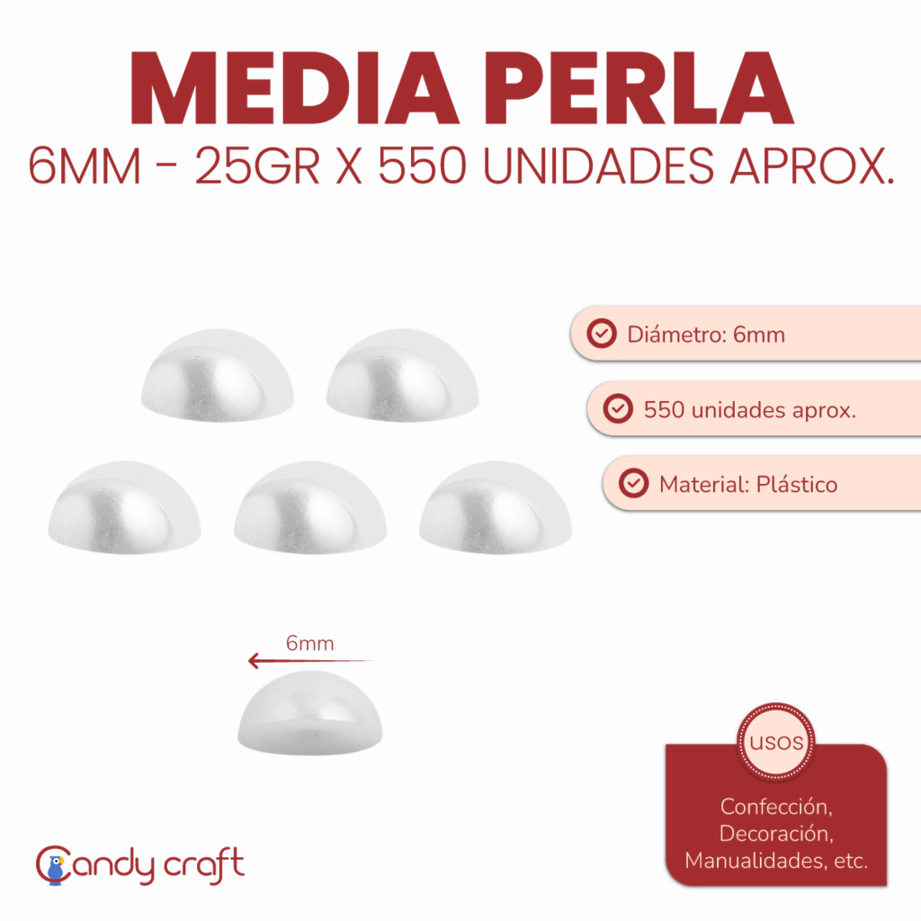 Medida: 6mm Cantidad: 1 paquete de 25gr. Unidades: 550 por paquete. Material: Plastico Uso: Confección, Decoración, Manualidades