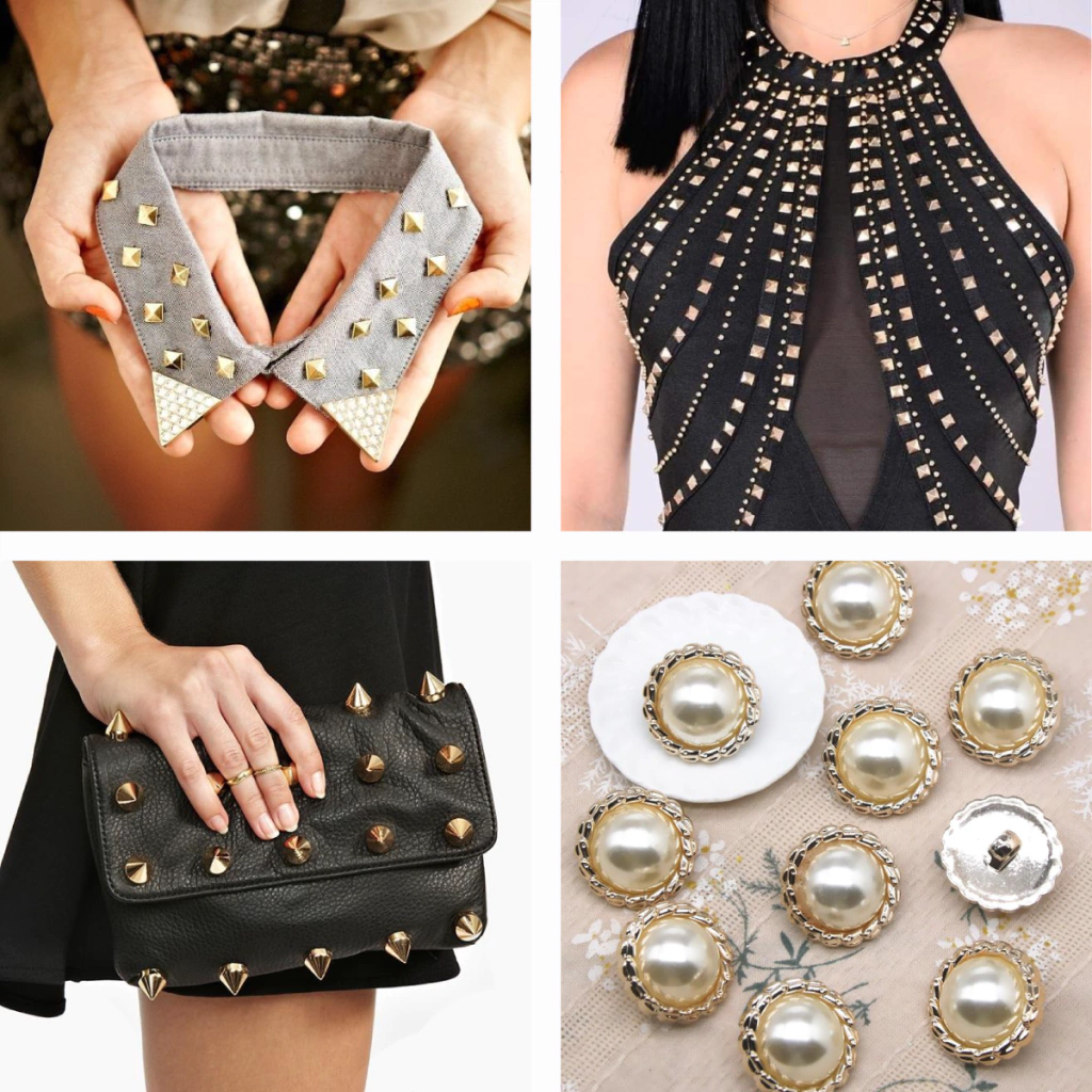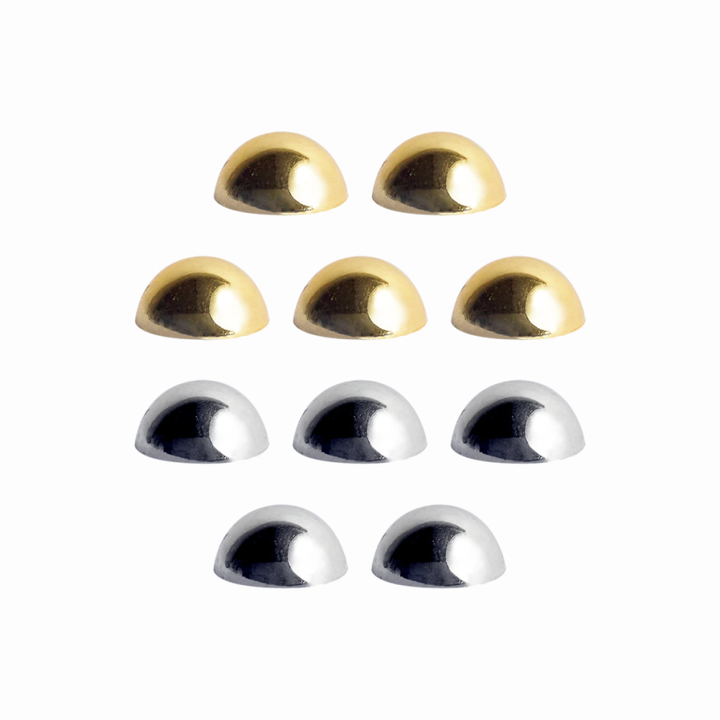 Medida: 10mm Cantidad: 1 paquete con 50 unidades Material: Plástico con clavijas de metal. Aclaración: Se aplican únicamente con nuestra maquina aplicadora de tachas y media perla. Colocar con Matriz: n°10 Uso: Confección, Decoración, Manualidades