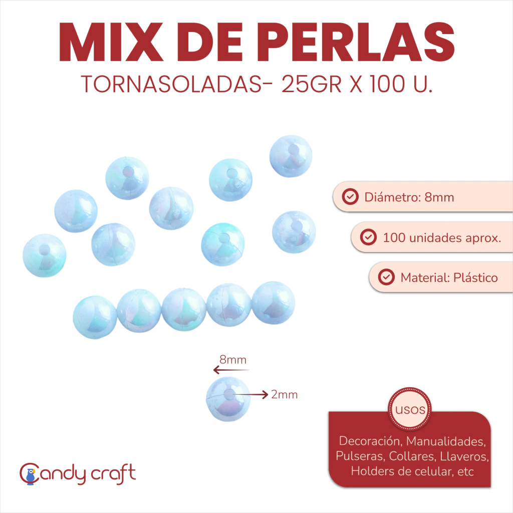 Mix de perlas tornasoladas. Los tonos dentro de cada paquetito varían.