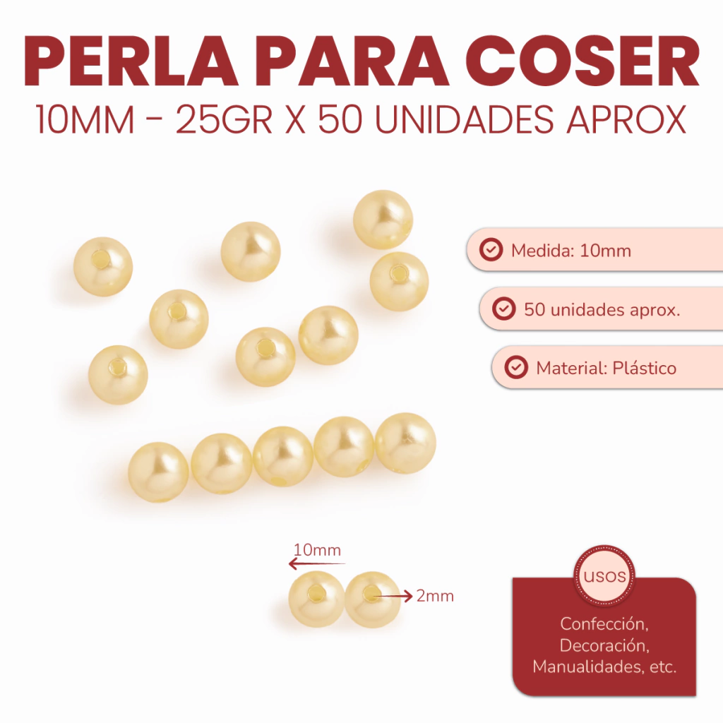 Medida: 10mm Cantidad: 1 paquete de 25gr. Unidades: 50 por paquete. Material: Plastico Uso: Confección, Decoración, Manualidades