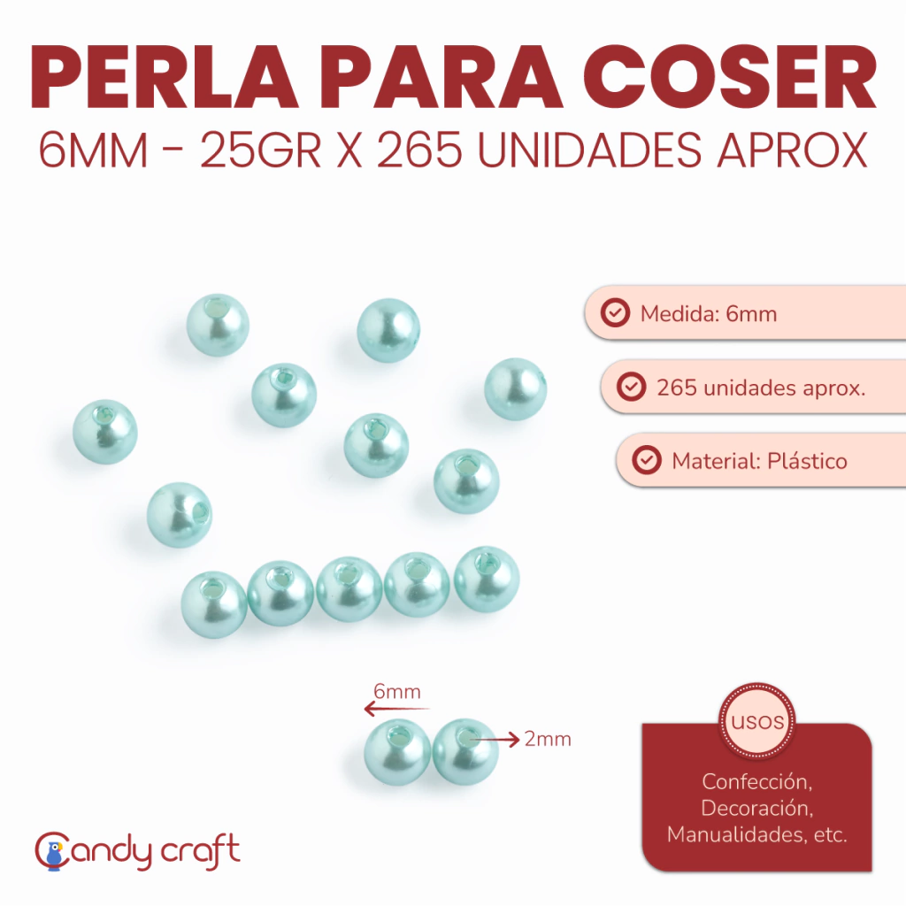 Medida: 6mm Cantidad: 1 paquete de 25gr. Unidades: 265 por paquete. Material: Plastico Uso: Confección, Decoración, Manualidades