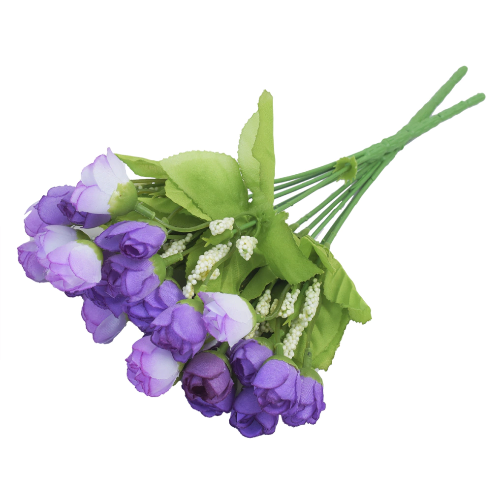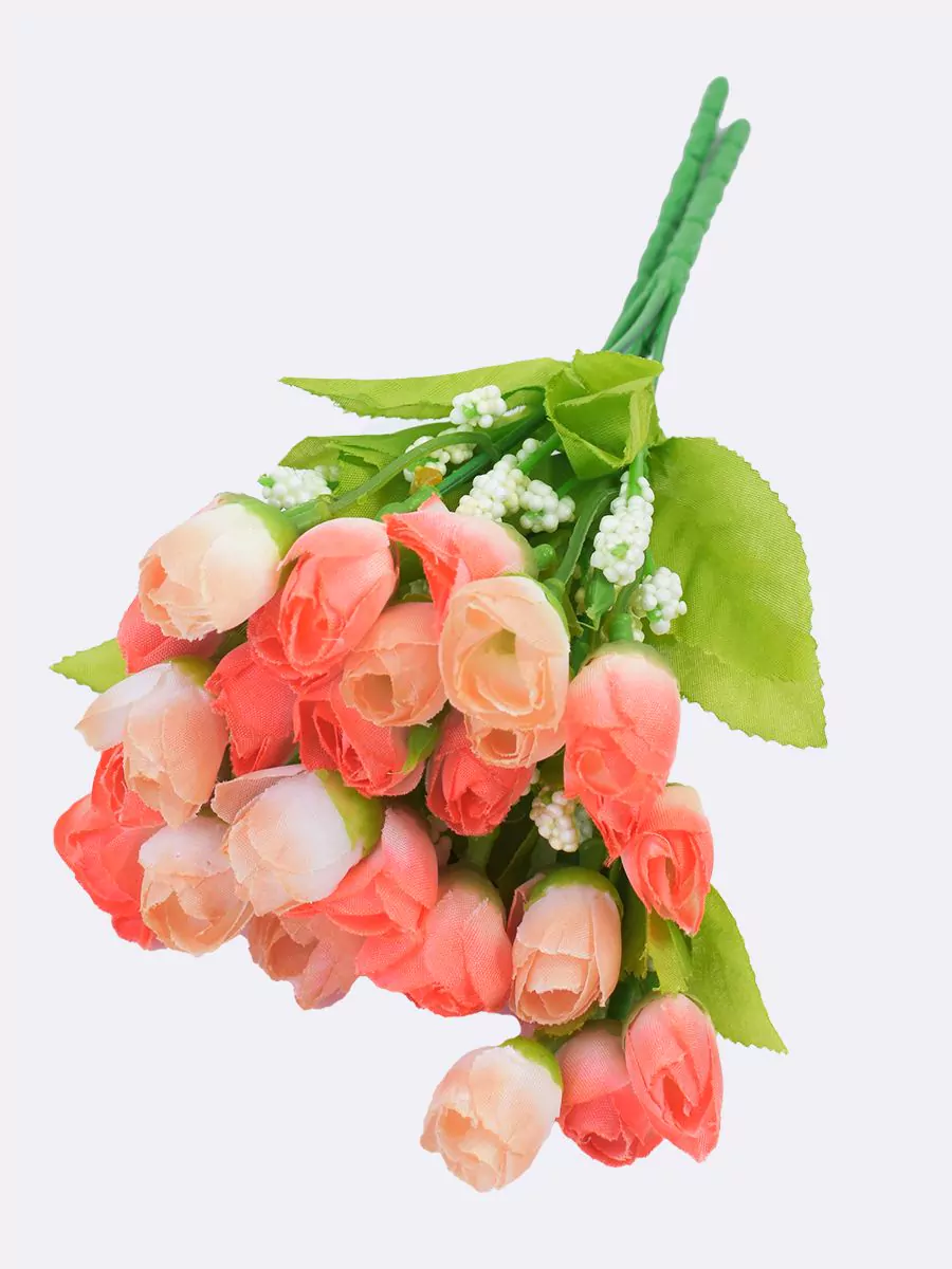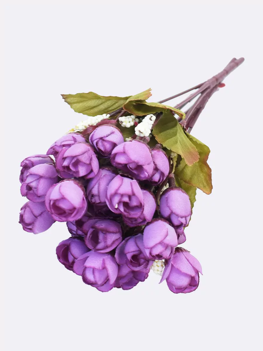 Medida Largo: 20 cm Ancho: 15 cm Cantidad de flores: 15 aprox Medida de flores: 2.5 cm aprox Material: Plástico Uso: Decoración, Mini ramos