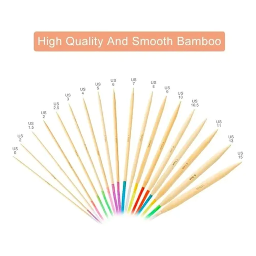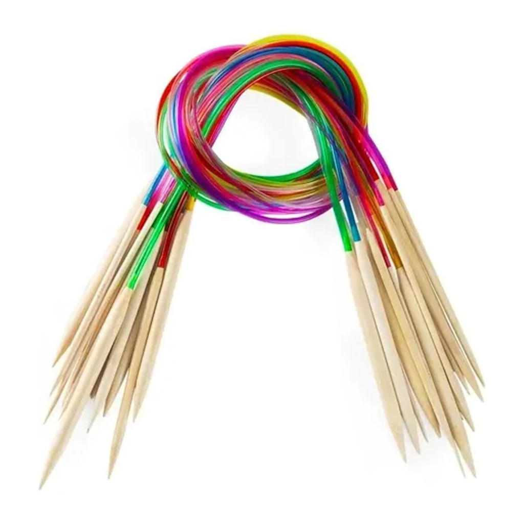Conjunto de agujas de tejido circular hechas de madera de bambu son livianas para mayor comodidad, suavidad y longevidad. el bambu es material natural y sin olor quimico. son mas suaves y livianos, lo que es ideal para aquellos que sufren dolor en las articulaciones, ya que requieren menos tension.