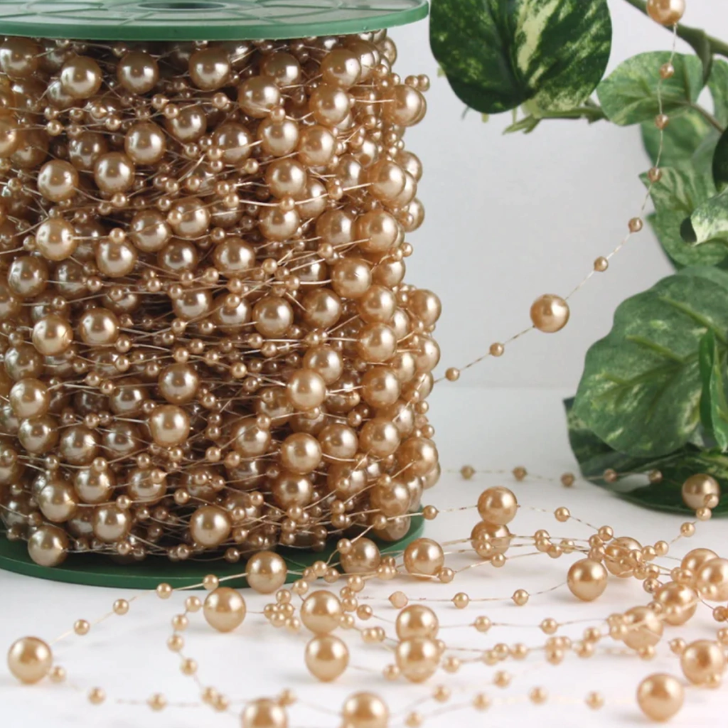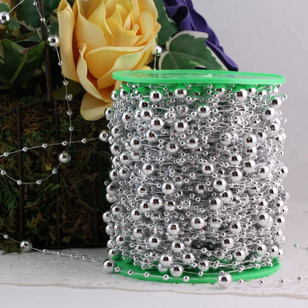 Medida Diámetro de Perla: 1 cm aprox. Largo: 60 metros Material: Plástico pintado. Uso: Confección, Decoración, Souvenirs, etc.