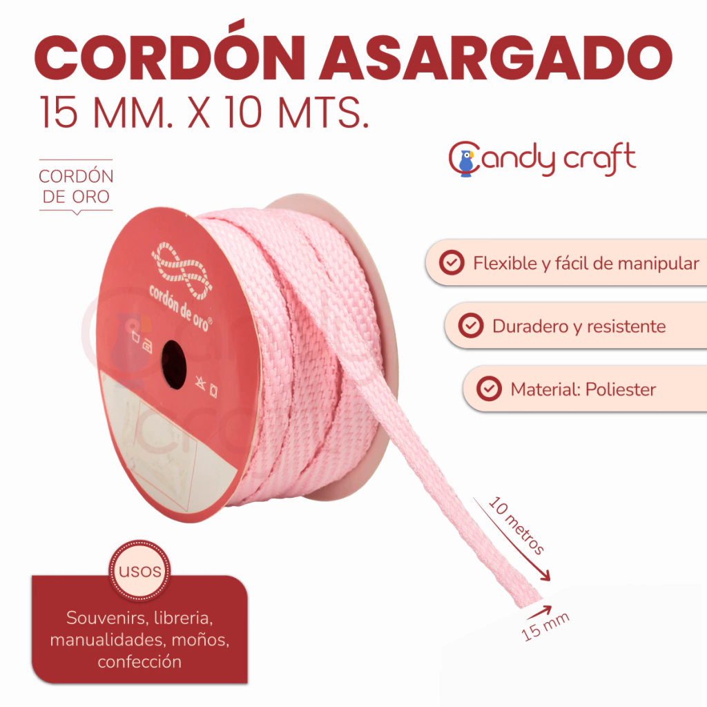 Medida Largo: 10 metros Ancho: 15 mm Marca: Cordón de Oro Material: Poliester Uso: Souvenirs, Librería, Manualidades, Moños, Confección, Carreras