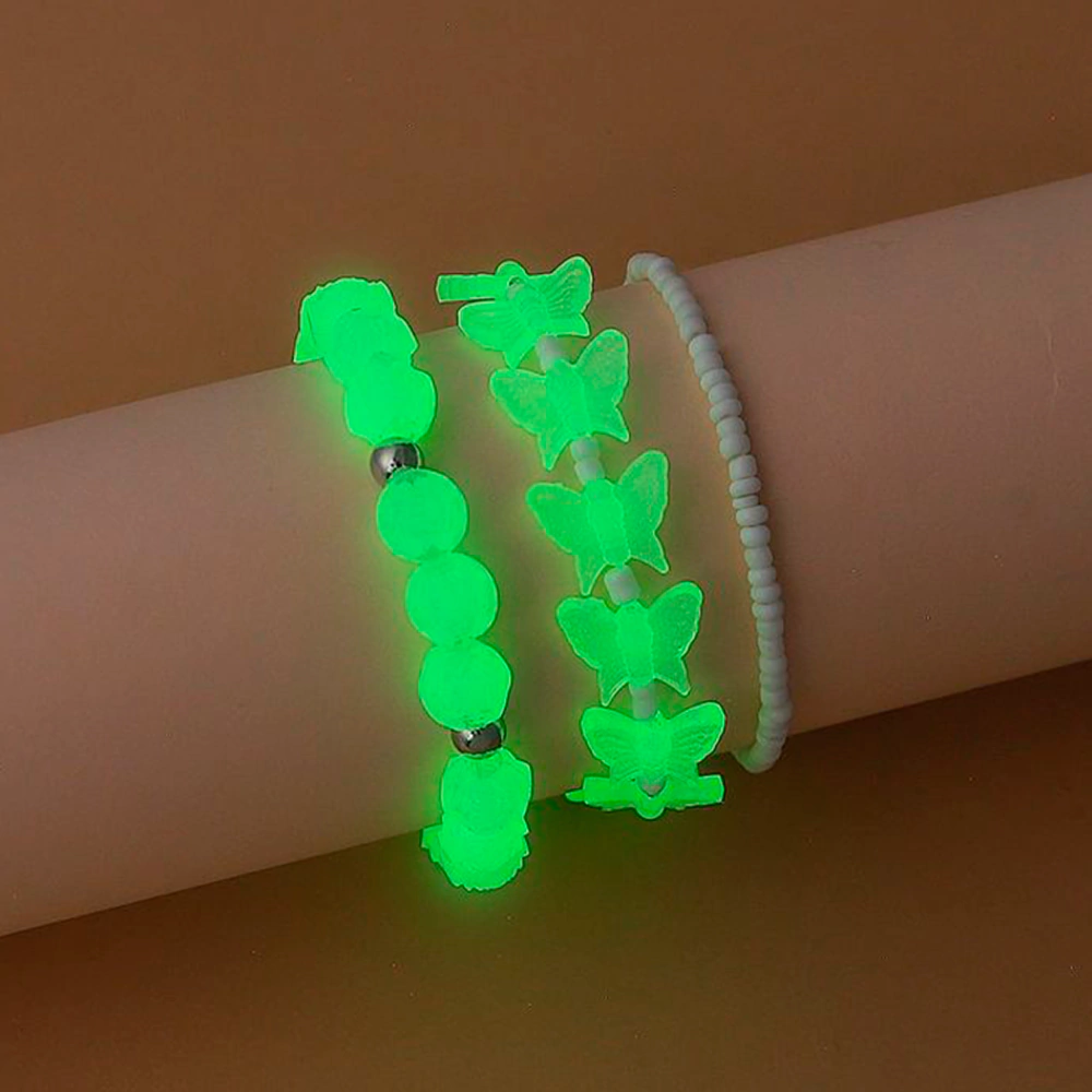 Medida: 9x11mm. Cantidad: 1 paquetito de 25 gramos con aprox. 65 unidades. Material: Plastico. Estas cuentas luminosas brillan tanto en la oscuridad como con luz UV.  Uso: Decoración, Manualidades, Pulseras, Collares, Holder para el celular, Souvenirs, etc.