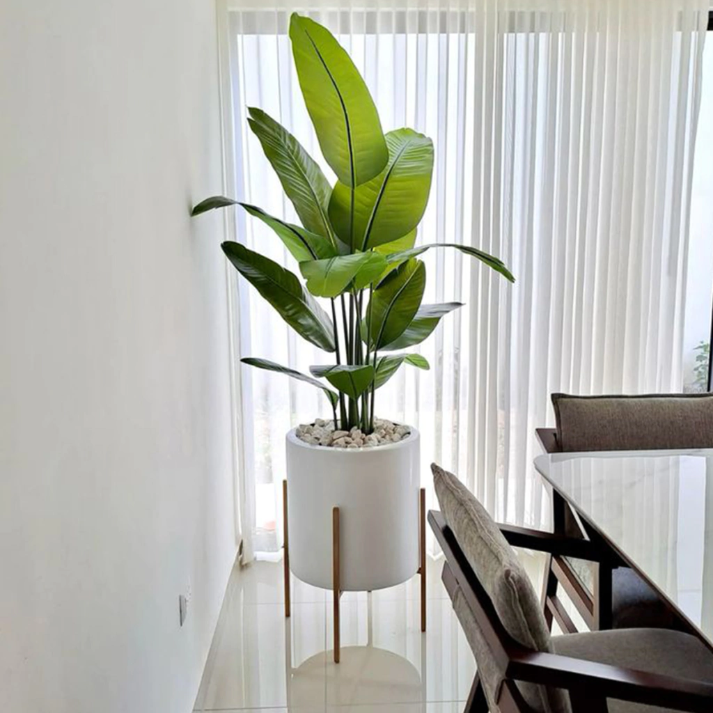 Alto: 1 metro (100 cm). Ancho: 50cm. Medida hojas: 23cm alto x 19cm ancho. Cantidad de hojas: 24. Planta artificial ideal para colocar en una maceta. Super realista y de gran tamaño. Material: Plástico. NO incluye la maceta. Uso: Cumpleaños, Souvenirs, Decoración de eventos, Jardín vertical, Ambientaciones, Deco Home.